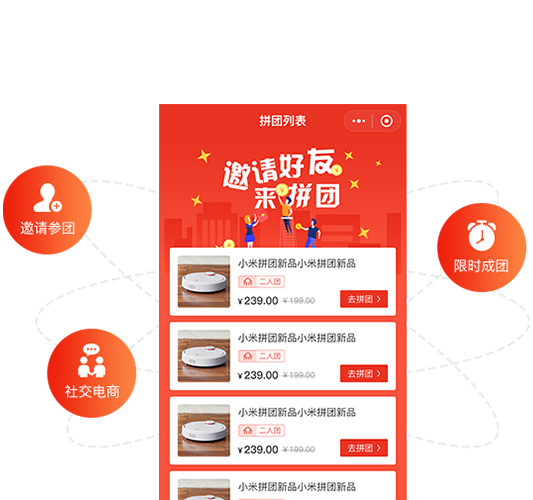 邀请好友拼团,商城订单成倍提升,增加收益